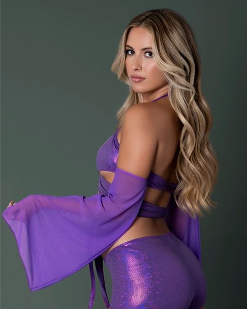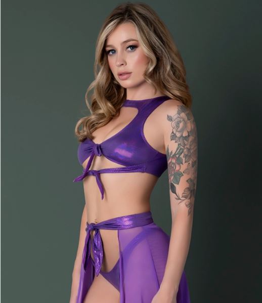 Glimmer Crop Top Skirt Tanga Metallic Purple 2xl