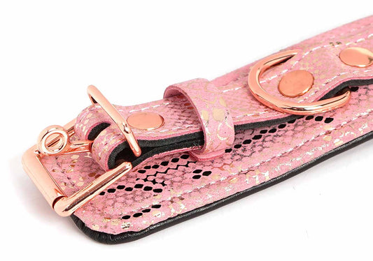 Microfiber Snake Print Wrist Restraints Pink W Leather Lining