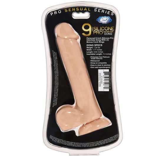 Pro Sensual Premium Silicone Dong W/ 3 C Rings 9 "