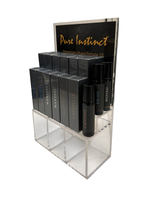 Pure Instinct Pheromone Infused Perfume Oil Men Acrylic Cube Display W/testers