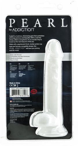 Addiction Pearl 7.5 inches Dong White Thermoplastic Elastomers TPE with Bullet Vibrator from BMS Enterprises. A pearl is a lustrous, shimmering gem that symbolizes all things precious and beautiful. The Pearl shimmering toy collection from Addiction shines, reflects and glistens with a pearlescent finish. The sturdy suction cup base allows you to attach your Pearl to any flat surface for extended pleasure and fun. Harness compatible, this Pearl Addiction will have you coming back for more! Made of body safe TPE material that is easy to clean and safe to use on all your most delicate areas. Key features: 7.5 inches Pearl dildo. Shimmering pearlescent finish. Sturdy suction cup base. Harness compatible. Easy to clean. Body safe TPE material. Bonus Power Bullet Vibrator requires 3 LR44 included. Categories: Dildos, Dongs, Realistic Small, Medium Dildos, Dildos and Dongs Realistic. Restricted, Amazon Restricted. 2023.