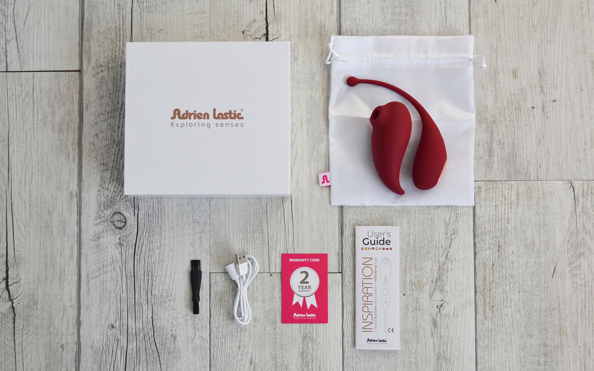 Adrien Lastic Inspiration Vibrator in an elegant double adult toy includes a clitoral suction stimulator with fascination of vibrating egg and built in remote control, created for spreading authentic double ecstasy. Distance and place it is not a problem anymore because you can connect through our new app and share intimate moments with your partner. Ref# 40783. EAN 8433345407838. Adrien Lastic recommends the use of water based lubricants for an easy and smooth insertion of all Silicone products. Do not use Silicone lubricant, oils or creams with any Silicone product as they can degrade the product material, limiting its performance and life span. Cleaning: thoroughly clean the toy before and after each use with warm water and mild soap. Storage: store your Adrien Lastic toy in a dust free place and keep it away from toys of other materials. Avoid leaving it in direct sunlight and never expose it to extreme heat. How to use the Inspiration: using your intuition you will find ease how to use it. We know you will be looking forward to a new release, but first, make sure you fully charge the battery. You will see, when you start using Inspiration you will not want to stop. Combining stimulation, intelligence and a little relaxation, seduce your two erogenous points with Inspiration, the clitoris and the G-Spot. For the best possible experience, we recommend applying a few drops of water based lubricant to the erogenous zones and to both adult toys. It is possible to turn on the vibrating egg and sucker in a standard way, with their buttons on the toys themselves. And you can also control them through the App Adlove, specially designed to manipulate sex toys with surprisingly varied functions. You will find different functionalities that you are going to love. From the solo mode to enjoy your sexuality in privacy, going through the music mode to vibrate to the rhythm of your favorite songs, or also with the shake mode, controlling the intensity and strength of the suction and vibration while shaking the phone or finally, the interactive mode, connecting with your partner or lover wherever you are and enjoy sexting to another level. And finally, why not invite your partner to choose vibration and suction modes from another city, another country or another continent? Thus discovering together new forms of stimulation and sexual pleasure. 2 years warranty. This warranty applies to all purchased Adrien Lastic products, commencing on the date of original purchase of such product. This warranty does not cover damage caused by misuse or use other than as intended and described in the product instruction manual, finishes, normal wear and tear, tampering, unreasonable use, service performed by unauthorized service agencies, or loss or damage to batteries or removable parts. Please note App Ready! Categories: Vibrators, Clitoral Bullets, Eggs Mini Vibrators, Sex Toys for Women. Adrien Lastic - Inspiration. Restricted, Amazon Restricted. 2024.