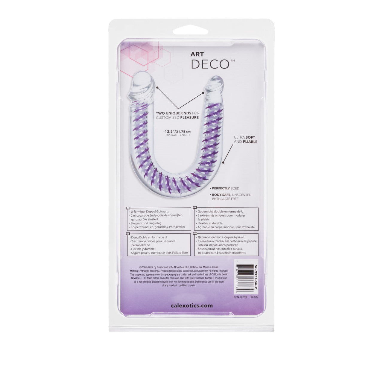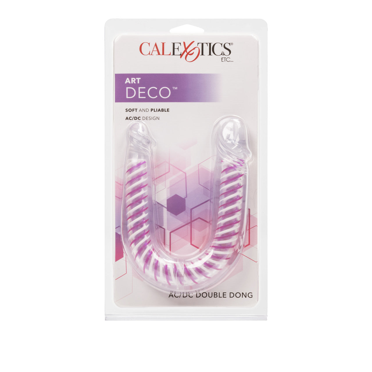 Art Deco AC/DC Double Dong Playful Dongs from California Exotic Novelties. Get double penetration the fun the stylish Art Deco AC/DC Double Dong. A designer adult toy for women who want to have twice the fun with stimulating pleasure both ways! This jelly soft dildo is the ultimate double penetrator, designed to be used independently or together for even more pleasure! The unique AC/DC dildo has been made with a high quality Crystalessence PVC so it will feel amazingly soft and can be used anywhere on your body safely. It boasts a jelly soft touch so that you can get a smooth, comfortable ride every time. Made with a unique U shape, this double penetrator is the perfect Anal Plug and Dildo in one, providing simultaneous vaginal and anal play for women. It measures a generous and extremely pleasing 12.25 inches in length by 1.25 inches in width, making it a perfect size for beginner or advanced users. The Art Deco AC/DC Double Dong has also been created with a stylish designer touch, making it pleasing to the eye while also being extremely fun and exciting to use. Enhance your pleasure with a good quality lube and remember always clean your toy before and after use to maintain maximum hygiene. U-Shaped for simultaneous vaginal and anal stimulation. Soft jelly Crystalessence jelly material with a unique 2 toned inner core. One head measures 1.25 inches wide and the other measures .75 inches wide. Double dong measures 12.25 inches long by 1.25 inches wide. Bulk weight 6.8 ounces. Made using phthalate free, non-toxic materials Crystalessence PVC. A water based lubricant is recommended. Art Deco AC/DC Double Dong is a registered trademark for California Exotic Novelties. Categories: Anal Toys, Dildos, Dongs, Double Dongs, Sales & Closeouts, Dildos and Dongs Realistic. 2023.