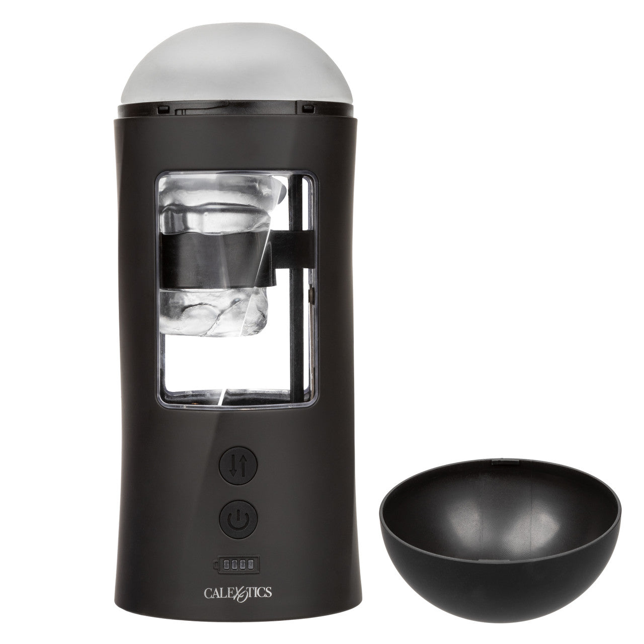 Bionic Power Stroking Masturbator from California Exotic Novelties Hand held ergonomic design. Wrap yourself in state of the art pleasure with the powerful Bionic Power Stroking Masturbator. This totally self contained thrusting masturbator was made to envelop the senses with a fully customizable stroking experience. An ultra tight textured chamber wraps tightly around you, while 7 functions of intense thrusting action deliver unparalleled pleasure with every stroke. No matter how hot and heavy things get, the easy touch control pad makes it easy to adjust functions and turn the stroker on or off. An ultra tight, ultra soft life like Stroker Sleeve can be removed for cleaning or used independently from the stroker. Take your pleasure to go with the removable cap for safe, clean storage. Indulge in over 60 minutes of low speed stroking pleasure and recharge passion in only 5 hours with the provided USB cable. Battery indicator lights.