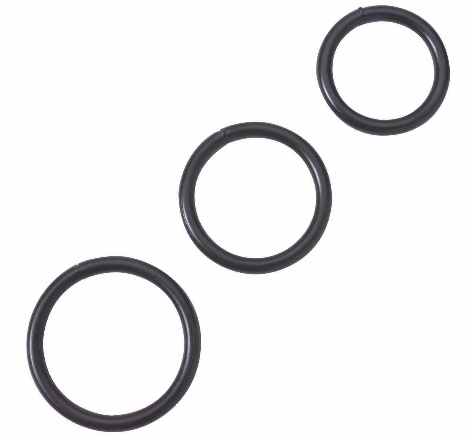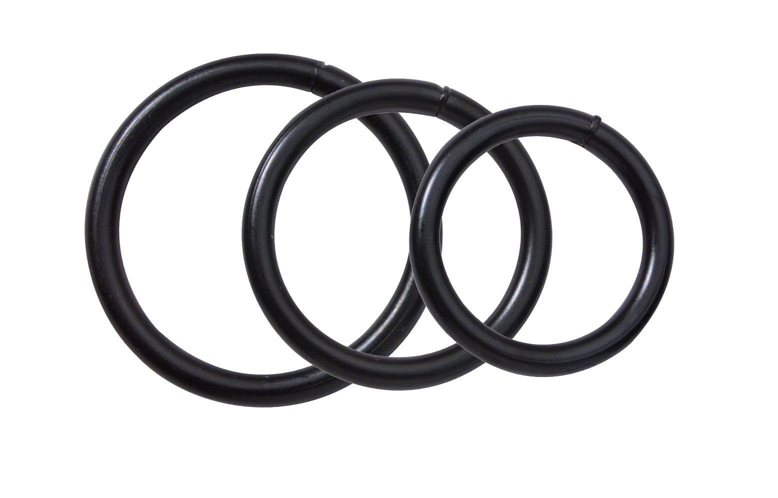Spartacus Leathers Cock Gear Metal Cock Rings. Black Steel Cock Rings Set comes with 3 different sizes. Steel is an excellent alternative for those with nickel allergies. Spartacus Black Steel Cock Rings make a striking visual statement with their Black Color. Nickel free. Black Steel Ring Set includes 1.5 inches ring, 1.75 inches ring and 2 inches ring. Set of metal cock rings, your choice of sizes, in nickel or black. When worn around the base of the penis and testicles, many users find that cock rings increase sexual pleasure. Prolong rings, erection enhancement, climax control rings, cock rings. Weighs 0.47 pounds. Black Steel Cock Rings Set from Spartacus A Passion For Quality Catalog page 26. Made in the USA. Categories: Love Rings, Cock Rings, Men's Cock and Ball Gear, Cock Ring Trios. 2023.