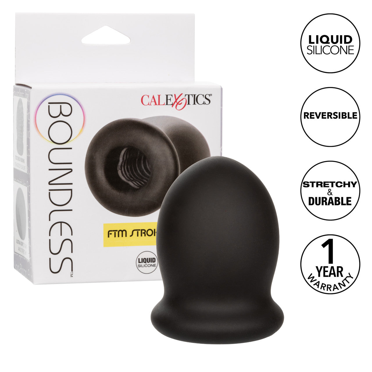Boundless FTM Stroker 2.75 inches by California Exotic Novelties. Introducing the Boundless FTM Stroker 2.75 inches, the ultimate stroking experience. This stroker is crafted from liquid Silicone, a material known for its softness, smoothness and durability. Experience incredible sensations with its soft, tight, and stretchy texture that envelops you in pleasure. The stroker features a reversible design, allowing you to choose between a smooth surface or textured ribbing for added stimulation. Find the perfect level of intensity that suits your desires. The closed end design creates superior suction, enhancing the sensations and intensifying your pleasure. Explore the depths of your desires with confidence and satisfaction. Cleaning and maintaining the Stroker is a breeze. Its hygienic design ensures easy cleaning, allowing you to focus on the enjoyment without any worries. Indulge in the boundless pleasure that the Boundless FTM Stroker 2 inches offers. Let this premium stroker be your companion on your journey of self discovery and pleasure.