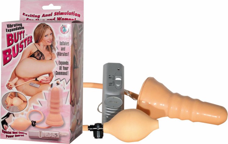 Inflates and vibrates. Expands at your command. Expandable Vibrating Butt Bust Inflatable ribbed butt plug expands with air to provide girth and volume. Dual power control with extra strong vibrations. Quick release allows instant deflation. Expands to 12 inches in circumference. 5.5 inches length. Vibrating sex toy requires 3 AA batteries, not included. Do not leave batteries in the vibrator between uses. Always clean before and after use. Expandable Vibrating Butt Bust from Nasstoys of New York. Categories Expandable Vibrating Butt Blaster: Anal Toys, Small, Medium Butt Plugs, Vibrators, Inflatable Butt Plugs. How to use video. 2023.