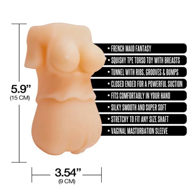 Satisfy your wildest ANIME fantasies with the Hentai Stroker, featuring Hentai Stroker Sakura Naughty Maid! Made from soft, body-safe TPE, the Hentai Onahole Stroker fits comfortably in your hand and is closed-ended for added suction. The tunnel features ribs, bumps, and grooves for life-like sensations, while the extra-stretchy, one-size-fits-all design is comfortable and easy to use. Complete with realistic breasts, vagina and naughty maid outfit, for an unforgettable experience.