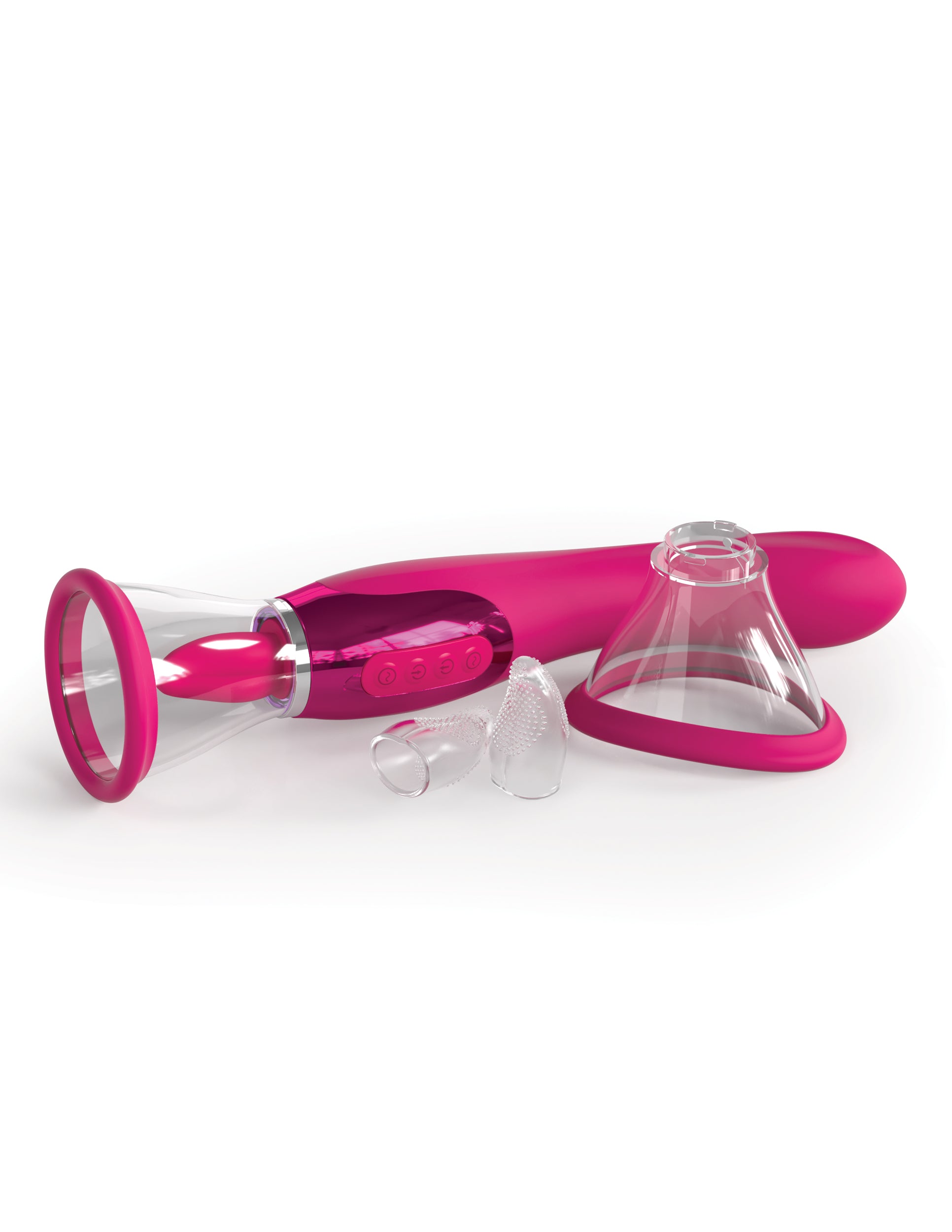 JimmyJane Apex from Pipedream Products. The Apex is our best seller for a reason. With four powerful motors, three suction patterns, seven tongue motion patterns, ten vibration patterns and a handle for G-Spot stimulation, this toy is everything you are looking for and more. The unique design targets sensitive areas with concentrated sensation. Intense suction for heightened pleasure. Powerful tongue motion patterns. Four motors offer powerful, fulfilling sensations. Includes two cup attachments which can be used on the vaginal and nipple. Choose between 7 tongue patterns, 10 handle vibration patterns, and 3 suction levels for your every mood. Used by women and couples. Great for Clitoral, G-Spot, Anal and Nipples stimulation. Splashproof. Low pressure water streams from any angle. Magnetic USB Charging Cord. Includes cloth storage bag. USB charging. Lithium Battery. Splashproof rating of IPX5. Size: length 10.2 inches. Width 1.7 inches. Depth 1.7 inches. Insertable length 4.8 inches. Insertable diameter 1.4 inches. Charging: run time up to 60 minutes. Charge time: 90 minutes. Materials: Silicone, Stainless Steel, Polycarbonate, ABS Plastic. Use: suction, tongue and vibration can be used simultaneously or independently. Tongue power On/Off: press the tongue button (Closest to the tongue) to initiate tongue motion. The LED will turn on, stay lit, and tongue motion will begin. Press the tongue button to cycle through 7 tongue motion patterns. The LED will blink in sync with each motion. Press and hold the tongue button for 3 seconds to to turn off. Suction Power On/Off: press the suction button (second button from the tongue) to initiate suction. The LED will turn on, stay lit, and suction will begin. Press the suction button to cycle through 3 suction levels (short, medium, long). The quick release button can be used to pulse or stop suction at any time. Press and hold the suction button for 3 seconds to turn off. Quick release: to quickly release suction at any time, press and hold the suction release button. (Third button from the tongue). G-Spot Handle Vibration Power On/Off: press the vibration button (button closest to handle) to initiate vibration. The LED will turn on, stay lit, and vibration will begin. Press the vibration button again to cycle through 10 patterns of vibration. The LED will blink in sync with vibration. Press and hold the vibration button for 3 seconds to to turn off. Cleaning: spray Jimmyjane Antibacterial Cleaner on the massager before use. Wipe with a clean, dry cloth and let it air dry. Repeat after use and store in a cool, dry place. Warnings: this massager is for novelty purposes only, is not intended for therapeutic purposes and is recommended for external use only. Prolonged use for more than 30 minutes or frequent use of more than twice daily is not advised or recommended. This massager is intended for adult use only. Use water based lubricants only. Categories: Vibrators, Clitoral Stimulators, Eco-Friendly Sex Toys, Rechargeable Vibrators, G-Spot Vibrator, Sex Toys for Women. 2024.