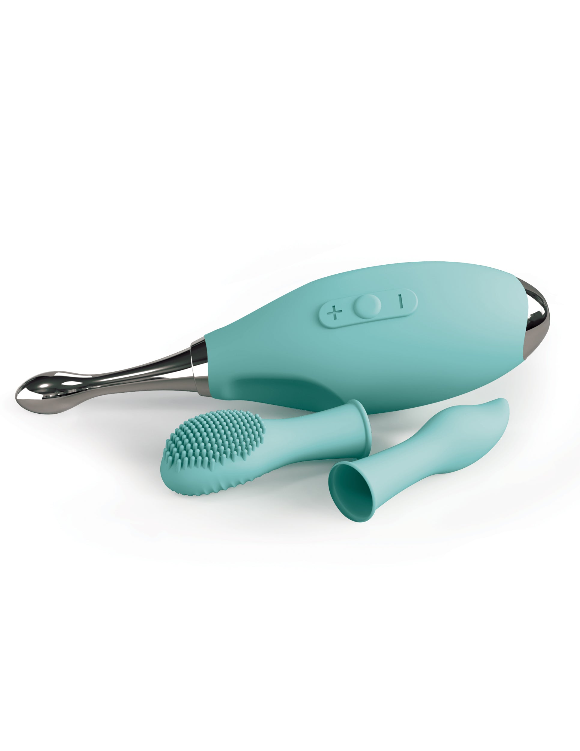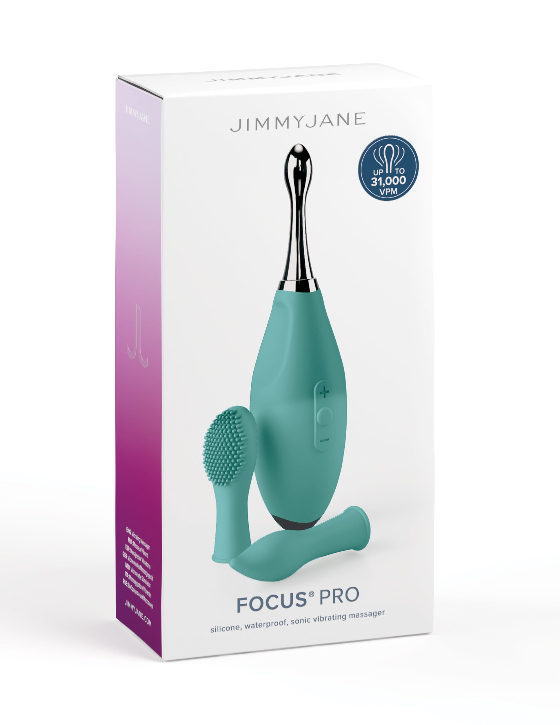 JimmyJane Focus Pro Sonic Vibrating Massager from Pipedream Products. Focus Pro Sonic Massager puts you in complete control of your orgasm with powerful, high frequency, sonic vibrations that peak at 31,000 VPMs. That is vibrations per minute. With the Focus you can confidently reach the peak of your sexual excitement. The contemporary Silicone and Stainless Steel design allows you to customize your pleasure with 2 unique, interchangeable Silicone head attachments.