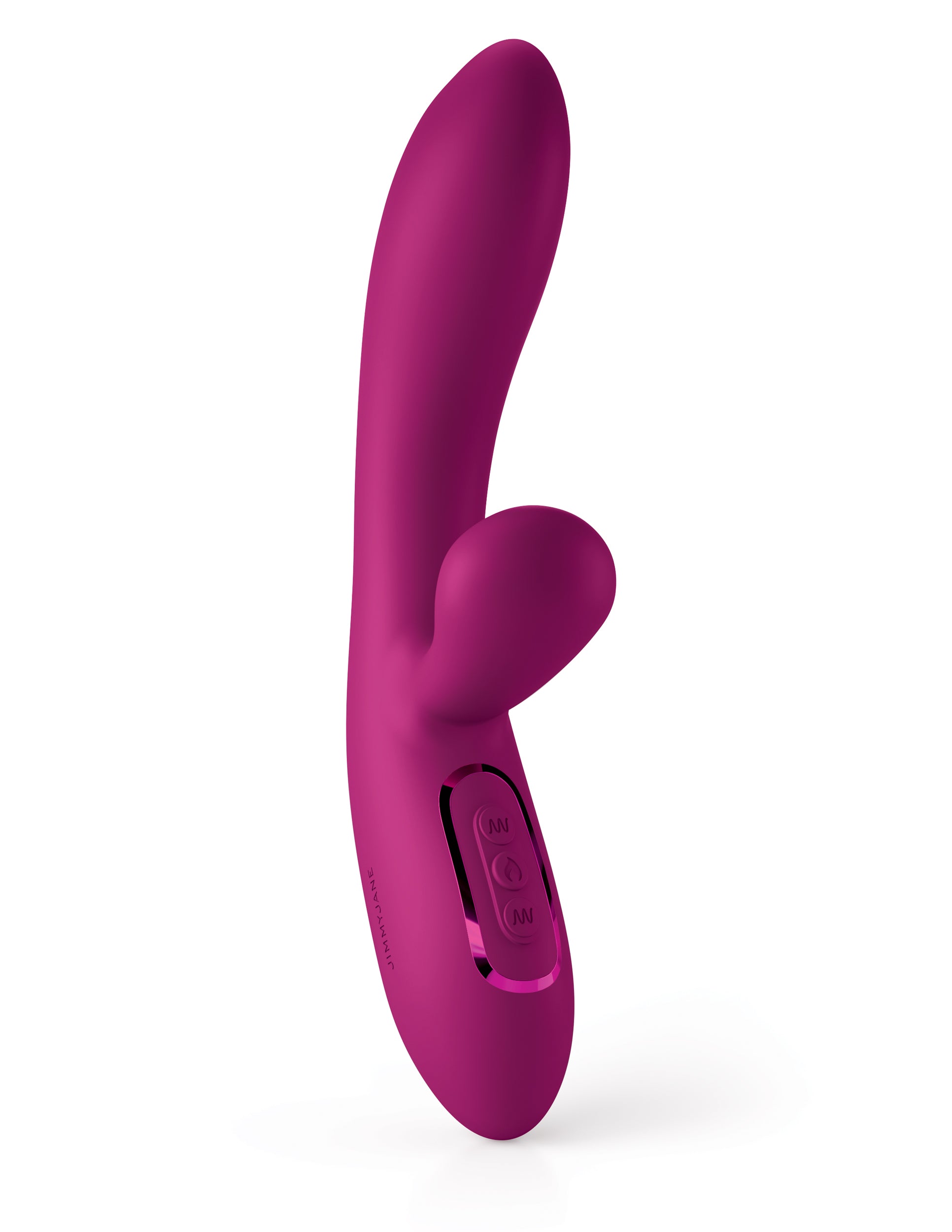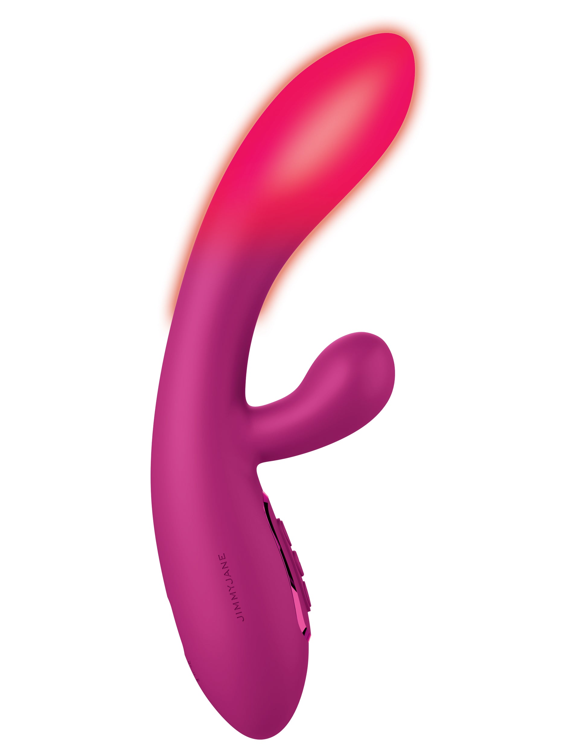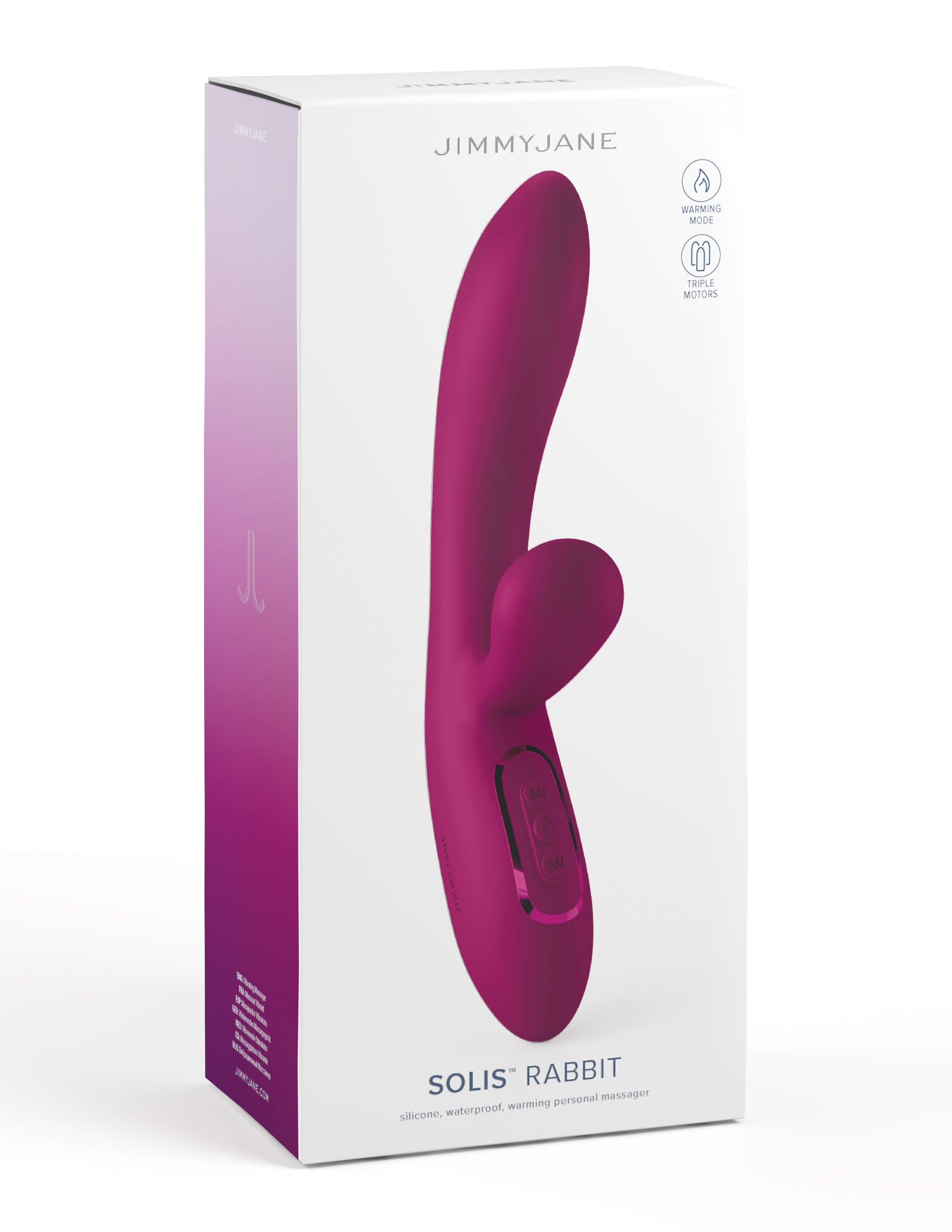 JimmyJane Rabbit Solis Vibrator from Pipedream Products. The Solis Rabbit Vibrator is unlike any other Vibrator on the market. It’ is specifically designed to give you a mind blowing orgasm thanks to its unique combination of rhythm and intensity. This Vibrator features three powerful motors in two separate zones, providing ultra intense stimulation to your vaginal canal and labia while also teasing your clitoris. The result is a blended orgasm like you have never experienced before. One that will certainly leave you gasping for more. The treble and bass motors operate at different frequencies creating stereophonic vibrations that will set you adrift on a cloud of ecstasy. Additionally, the warming mode is perfect for temperature play, adding an extra layer of sensual pleasure to your experience. With 10 different vibration patterns, per motor zone to choose from, the Solis Rabbit is sure to satisfy even the most demanding lover. From quickies to marathon sessions, this versatile Vibrator has you covered with up to 45 minutes of play time. Imagine being enveloped in a cloud of pure bliss, your body quivering with pleasure as the Solis Rabbit takes you to new heights. Whether you are using it to tease and tantalize your most sensitive areas or explore its infinite possibilities with a partner, the Solis Rabbit is sure to become your new best friend. So go ahead and let yourself go: the Solis Rabbit is waiting to take you on the ride of a lifetime. Features: Stereophonic Vibrations. Independently controlled head motor allows for pin point external vibrations. Powerful, fulfilling vibrations. Used by women and couples.