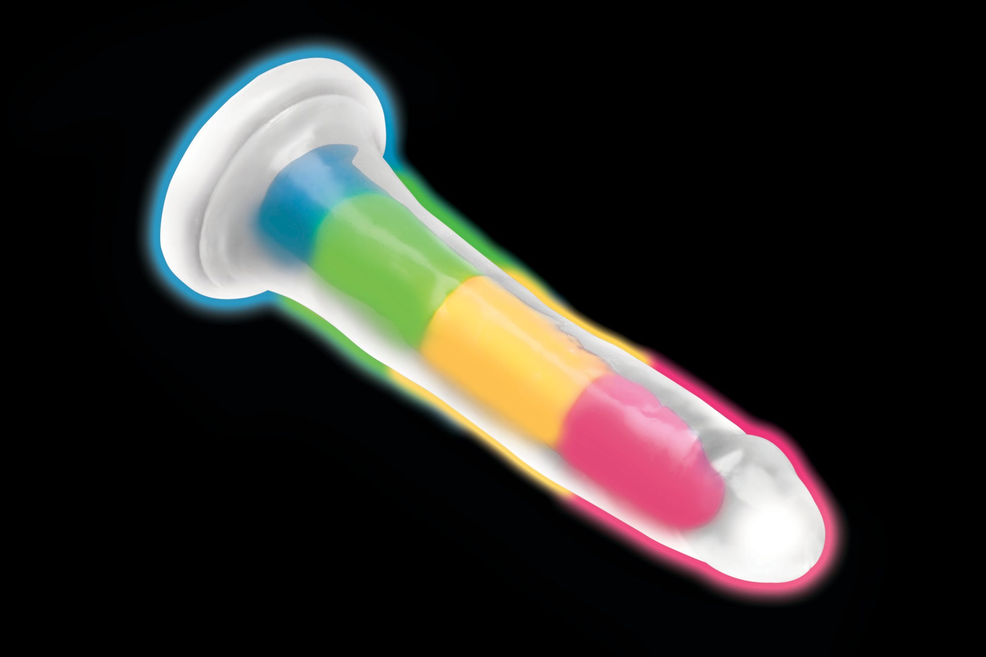 Lollicock 7 inches Glow In The Dark Rainbow Silicone Dildo from Curve Toys. That is one Sweet Stick! Indulge in the best selling radiantly colored Lollicock slim line of Dildos. Designed to dazzle your senses, our slim dildos are an absolute must. Realistic shapes, popular sizes, and uniquely crafted designs are a sure fire way to keep the sizzle coming. Our product lines are made from ultra clear Silicone. They are harness compatible, crafted with strong suction cups, and offer a wildly popular selection of colors and styles to choose from. Dual Density design. Made with 100% platinum elite Silicone. Super strong suction cup sticks to almost any flat surface. Harness compatible. Please only use stretchy o-rings. Metal ones may cause damage to the Dildo. Easy to clean. Use sex toy cleaner followed by a warm water rinse. Pat dry before storing. Made using body safe, phthalate free, latex free Silicone. Dual Density. Glows in the dark. Extreme flexibility. Soft Silicone Material. Hypoallergenic. Non-Porous. Harness Compatible. Care instructions: clean with soap and warm water or toy cleaner. Use with any water based lubricant. Product specifications: dimensions overall length 7.9 inches, insertable length 7.2 inches, widest insertable diameter 1.7 inches. Bulk weight 9.7 ounces. Material Silicone. Product type Dildo. Color Rainbow. For an intense glow, charge the Dildo with a direct light source, either 30 seconds with a flashlight or 2 minutes of ambient light. Categories: Dildos, Dongs, Realistic Small and Medium Dildos, Dildos and Dongs Realistic. 2023.