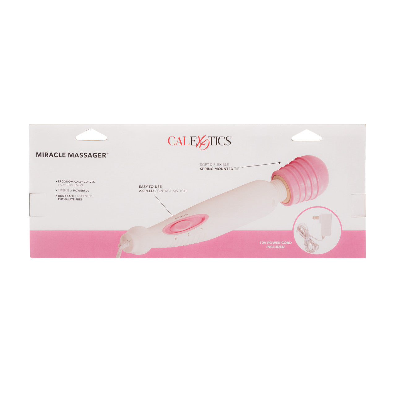 My Miracle Massager from California Exotic Novelties. Ergonomically angled for your sensual satisfaction, My Miracle Massager flexes, and moves in harmony with your body. Soothing, reverberating vibrations are yours to enjoy every time you plug in and power up this high intensity personal stimulator. Use it to ease tension anywhere on the body, and to stimulate your intimate sweet spots. The heavy duty, 2 speed arouser measures 10.5 inches by 2 inches and has a super flexible spring mounted, soft and supple phthalate free PVC Head with pleasure ridges, and an easy grip curved handle. The Massager’s curved shape is perfect for gliding and sliding action and delivers intense stimulating pleasure. The versatile Massager also has a 120 Volt AC Plug for speedy power up action. Simply Plug into a socket and you are good to go. My Miracle Massager is easy to use and ideal for first time and experienced users. For extended intimate sensations, always use a quality water base personal lubricant with this power packed vibe. To control the powerfully intense vibrations slide the control switch, located on the Massager’s curved handle. Before and after every use, always clean the ribbed PVC Head with a toy cleaner spray. Do not use the Massager in or around water. Experience soothing resonating vibrations. High intensity, ultra powerful Massager comes with 2 speeds. Ergonomic shape for ease of use. Spring mounted ribbed Head. Personal massage device is powered by common household electricity 120 Volt AC. Safe and pure for body and pleasure. Made using phthalate free, non-toxic materials Polypropylene PP Handle, PVC Head. Head measures 2.5 inches long by 2 inches wide. Overall Massager measures 10.5 inches long by 1.75 inches wide. Bulk weight 14.3 ounces. Cord measures about 6 feet long. Please note this item is for external Massage for muscles, tendons, clitoris and testicles. Accessories to convert to an internal device are sold separately. Colors may vary. My Miracle Massager is a registered trademark for California Exotic Novelties. Sex toys and sexual wellness. Categories: Vibrators, Magic Wands, Body Massagers, Solo Body Massagers, Health and Beauty Aids. 2023.