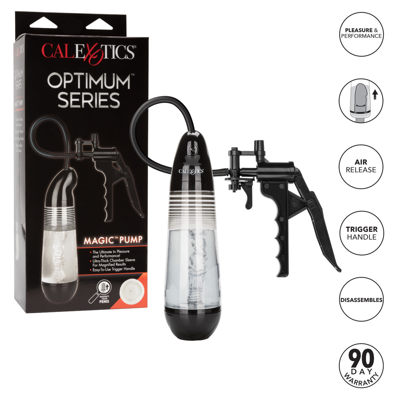 Optimum Series Magic Pump from California Exotic Novelties. Magnify your assets with the Optimum Series Magic Pump, a sleek, durable Penis Pump made for superior suction and performance enhancement. Increase endurance, improve stamina and amplify your rod with this beginner and expert friendly male sex toy. The sleek Pump provides the ultimate enhancement experience with an easy Squeeze Trigger Handle, thick open ended Chamber Sleeve and Quick Air Release Valve. The durable open end Sleeve and tight, nubby chamber give you sinful stroking pleasure with or without the Pump. Never settle for less when it comes to the size of your pleasure with the Optimum Series. The Cylindrical Pump and thick, durable Sleeve are designed to effortlessly create the perfect seal and powerful suction. Once you have reached your peak Pump, use the Quick Air Release to decrease suction or release seal. When used regularly, this powerful Pumper can increase stamina, enhance overall size and amplify sensation. To make sure you never miss your exercises, the powerful Pump has a protective travel cap for enhancement to go. To track progress, use the incremental measurement marks on the Cylinder shaft. The premium Sleeve fits into most standard Pumps, but can be used independently for a passionate stroking experience. The premium Thermoplastic Rubber TPR is a body safe, unscented and phthalate free to keep you most sensitive spots, happy and healthy. Enjoy easy clean up with this maintenance free stimulator Sleeve, simply wash with soap and warm water before and after each use. Pat dry before storing. Use ample lubricant for easy insertion. Categories: Sex Toys for Men, Penis Pumps, Male Pumps, Health and Beauty Aids, Trigger Pumps 2023.