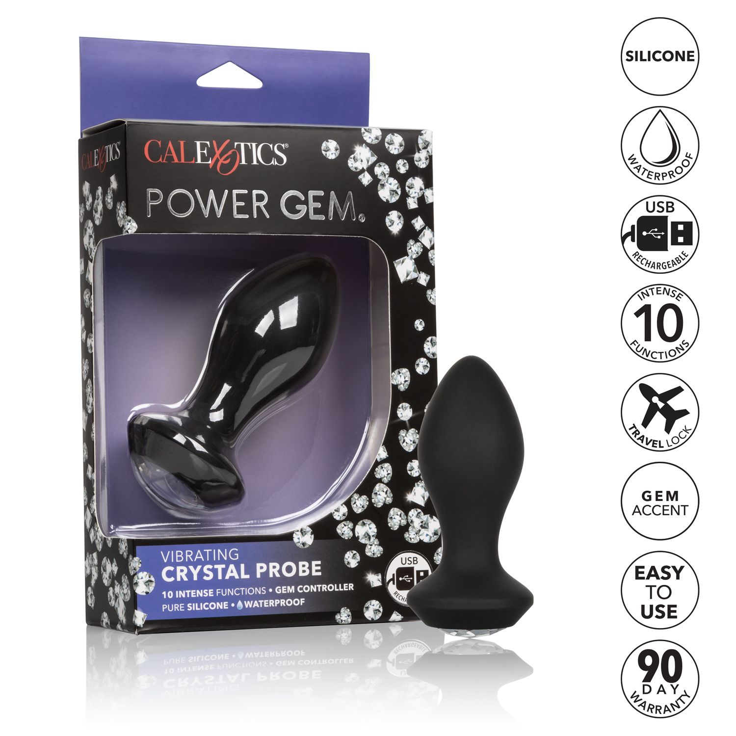 Features: phthalate free, waterproof, rechargeable, vibrates. 1 year warranty. Maximum run time 120 minutes. Maximum charging time 120 minutes. Measurements 4.25 inches by 1.25 overall. 3.25 inches by 1.25 inches probe. Bulk weight 2.2 ounces. Package weight 5.2 ounces. Package 2 inches by 4.75 inches by 8.5 inches. Categories for the Power Gem: Anal Toys, Small and Medium Butt Plugs, Vibrators, Eco-Friendly Sex Toys, Rechargeable Vibrators. 2023.