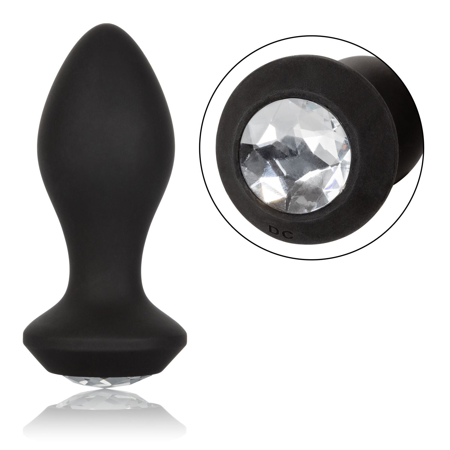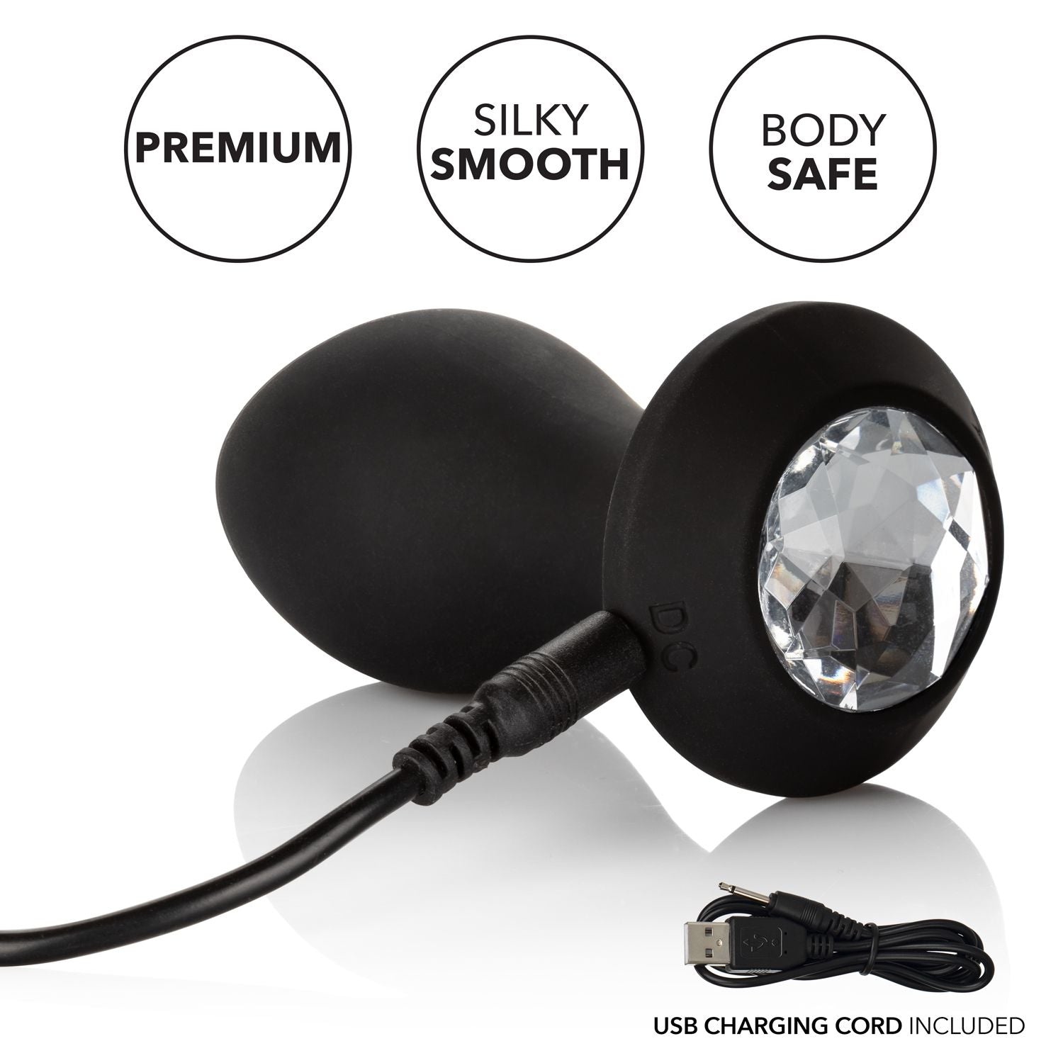 The Power Gem Vibrating Petite Crystal Probe from California Exotic Novelties a dazzling, flexible Silicone Probe created to ease you into thrilling anal pleasure. The pliable, ergonomic design and powerful vibe motors allow this probe to flex with your movements while delivering intense vibrations. Indulge in personalized pleasure while the sleek probe pulsates with 10 vivacious vibration, passionate pulsation and erotic escalation. Control this variety of orgasmic options with the easy touch gem stone button. To ensure everything the exhilarating world of anal play has to offer, we have created a gently tapered probe for the ultimate in comfort and stimulation. The flexible shape and flange base allows for easy insertion and removal, while the intense motor make you shudder with pleasure. Whether you are taking a dip with a lover or indulging in a steamy solo session, look forward to up to 2 hours of waterproof vibration. Recharge pleasure and get back to playtime in only 2 hours with the provided USB cable.