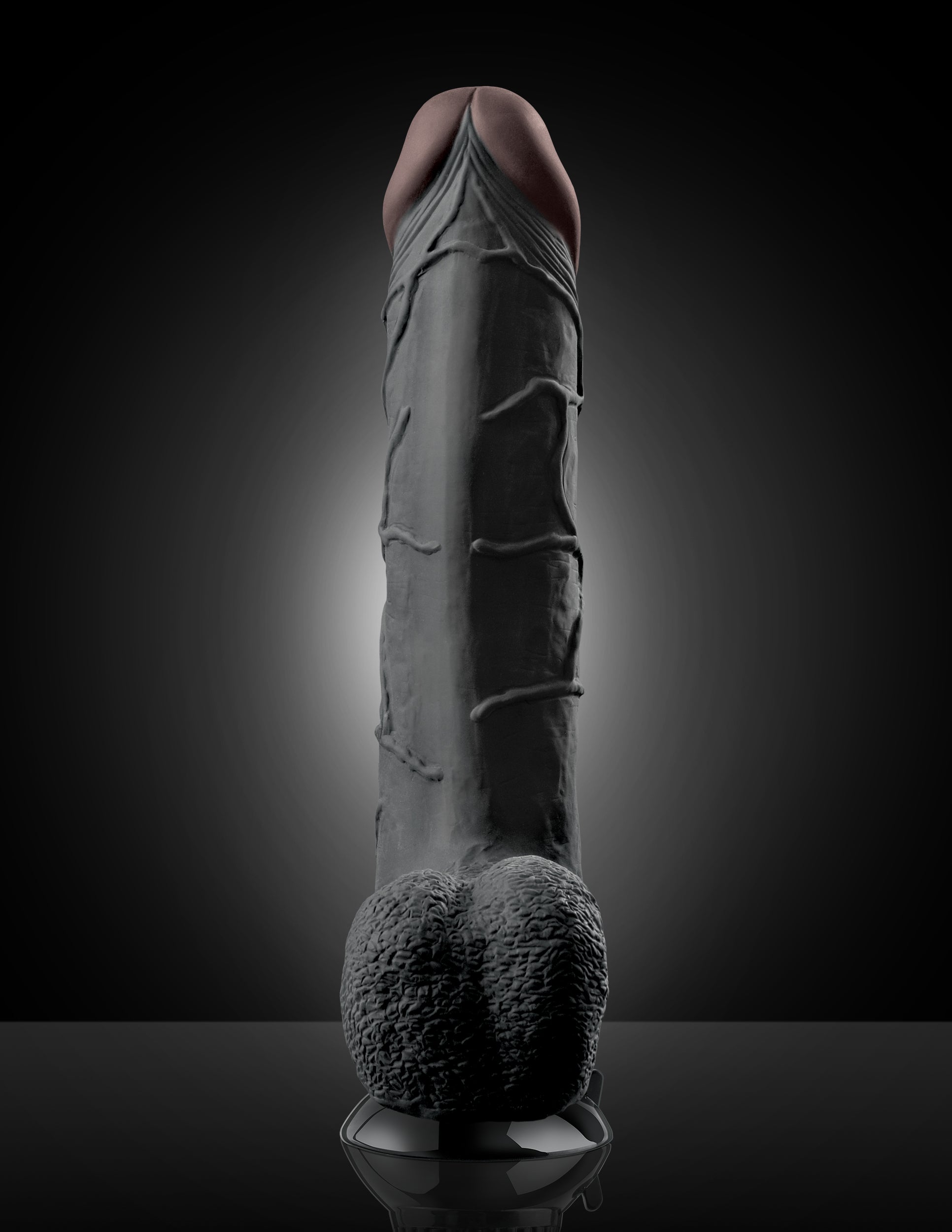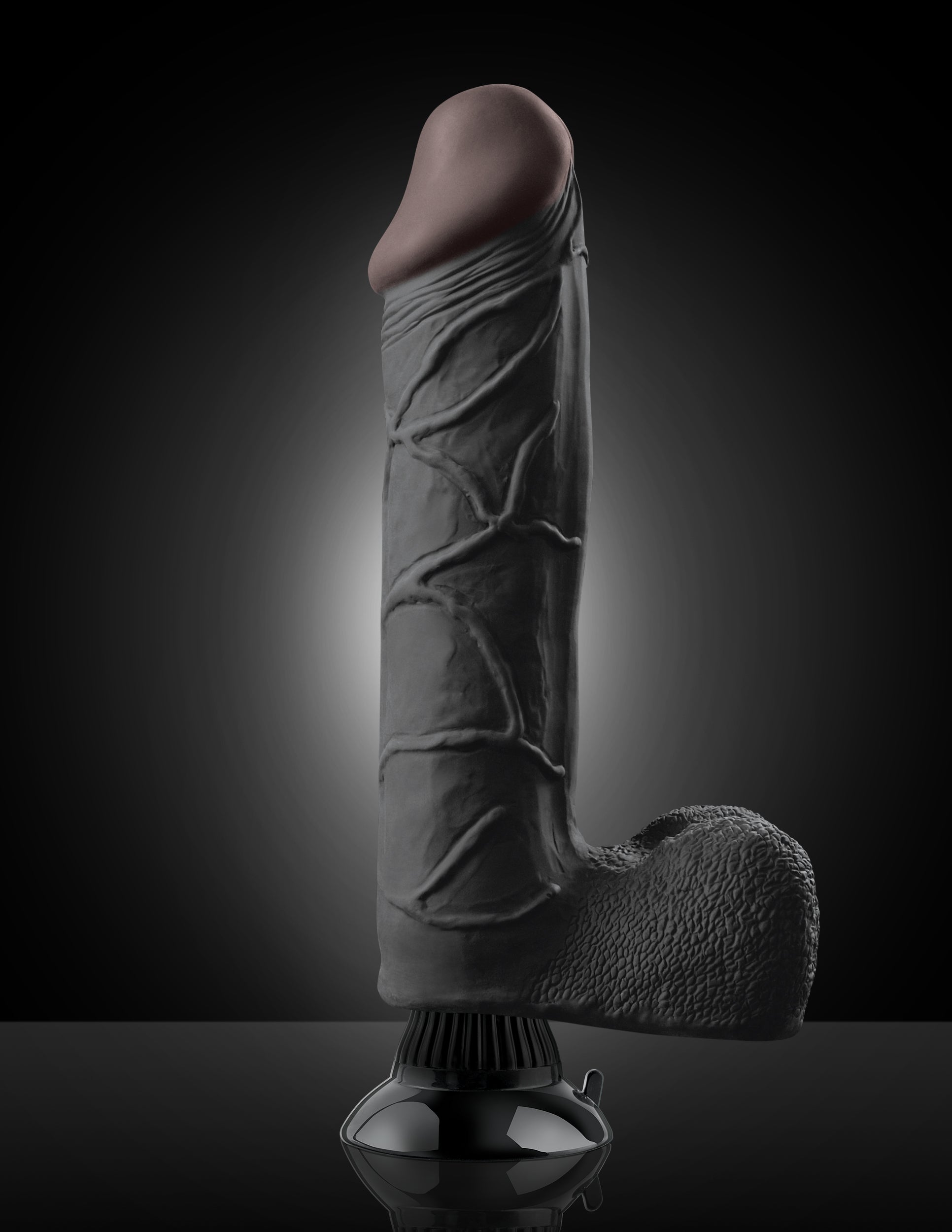 Real Feel Deluxe No. 11 Black 11 inches Realistic Vibrator with Wall Banger Suction Cup Technology. Enjoy the Real Feel of velvet soft, life like skin with this incredibly realistic vibe. Meticulously designed with a pronounced head, bulging veins, and free hanging balls, the super lifelike shapes, textures, and colors of this vibe truly look and feel like the real thing! Made with phthalate free Fanta Flesh, this squishy material mimics the softness of real skin and is completely body safe. The ultra strong suction cup base sticks to nearly any smooth, flat surface for a wall banging good time! Stick it to the floor, wall, tile or bedpost the super-strong suction cup will stay securely in place during every passionate thrust, and features a quick release tab for easy removal. The sturdy suction cup doubles as a harness compatible base that remains snug in its place even when the action heats up. Wear this vibrating dildo with any Fetish Fantasy Series harness for the most comfortable and realistic strap on experience! Insert the required batteries, screw the base completely on until it is tight, and the vibe will immediately turn on to offer powerful vibrations for the most intense orgasm you have ever imagined! To power down, simply unscrew the cap and the vibe will turn off. Take this completely waterproof vibe in the shower, hot tub, or spa and turn bath time into pleasure time! Use plenty of Moist Personal Lubricant for an extra wet and wild experience. Cleanup is a snap after the fun with Pipedream Toy Cleaner and warm water. Insertable length 9.5 inches, diameter 2.5 inches, length 11.25 inches, width 2.5 inches, height 2.5 inches, girth 7.5 inches, diameter 2.5 inches. Weight 2 pounds.