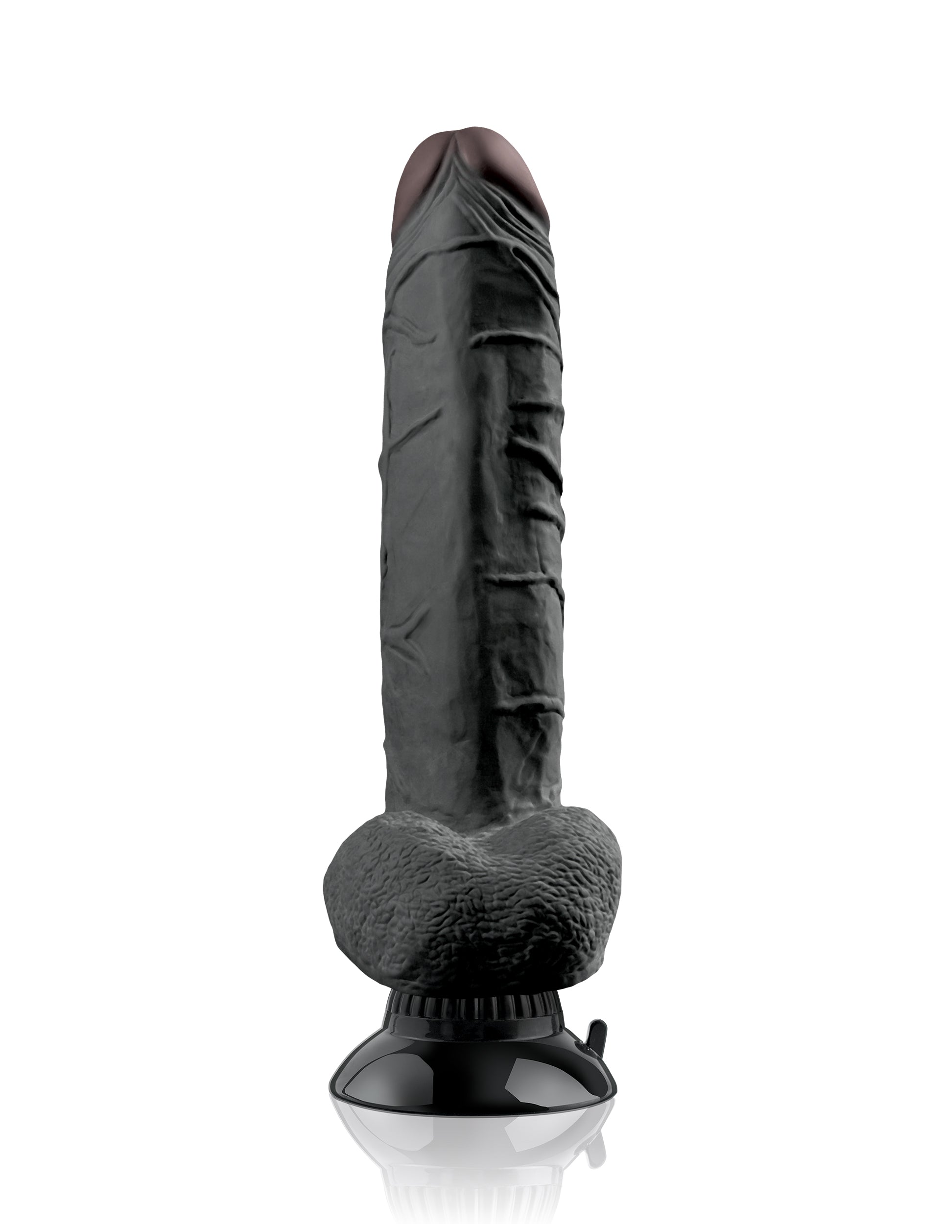 New and improved. Real Feel Deluxe No. 7 Black 9 inches Realistic Vibrator with Wall Banger Suction Cup Technology from Pipedream Products. Enjoy the Real Feel of velvet soft, life like skin with this incredibly realistic vibe. Meticulously designed with a pronounced head, bulging veins, and free hanging balls, the super life like shapes, textures, and colors of this vibe truly look and feel like the real thing! Made with phthalate free Fanta Flesh, this squishy material mimics the softness of real skin and is completely body safe. The ultra strong suction cup base sticks to nearly any smooth, flat surface for a wall banging good time! Stick it to the floor, wall, tile or bedpost the super strong suction cup will stay securely in place during every passionate thrust, and features a quick release tab for easy removal. The sturdy suction cup doubles as a harness compatible base that remains snug in its place even when the action heats up. Wear this vibrating dildo with any Fetish Fantasy Series harness for the most comfortable and realistic strap on experience! Insert the required batteries, screw the base completely on until it is tight, and the vibe will immediately turn on to offer powerful vibrations for the most intense orgasm you have ever imagined! To power down, simply unscrew the cap and the vibe will turn off. Take this completely waterproof vibe in the shower, hot tub, or spa and turn bath time into pleasure time! Use plenty of Moist Personal Lubricant for an extra wet and wild experience. Cleanup is a snap after the fun with Pipedream Toy Cleaner and warm water. Insertable length 8.7 inches, diameter 2.0 inches, length 10.75 inches, width 3 inches, height 3 inches, girth 6.25 inches, diameter 2 inches. Bulk weight 1 pound, 1 ounces. Shipping information: Package Depth 3.5 inches, Width 5.5 inches, Height 12.5 inches. Packaged weight 1.5 pounds. Package Type Box.