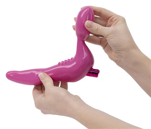 Rechargeable Infinity Strapless Strap On Pink from BMS Enterprises. The Infinity provides ultimate pleasure by reaching different erogenous zones for two lovers at the same time. Whether you are new to strap on play, want one that vibrates or simply do not want to deal with a harness, the flexibility and versatility of the Infinity will allow you to indulge your creative fantasies. As a bonus the Infinity comes packaged with one of the most popular toys in the industry, the Power Bullet Rechargeable, making the Infinity capable of vibrating or simply providing another waterproof toy to play with alone or together in wet environments. Whether it is for vaginal or anal penetration the Infinity has been designed to fit both sexes perfectly and needless to say, is a great toy for couples.