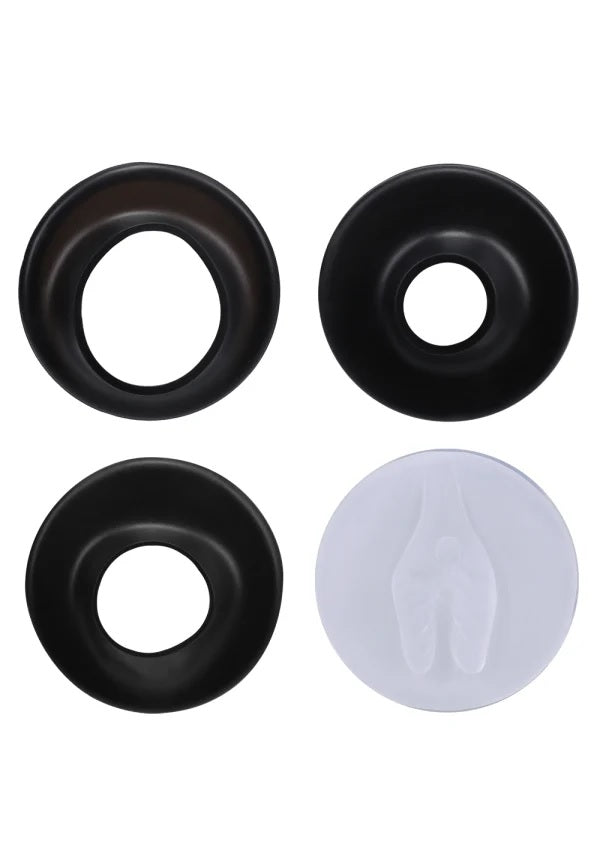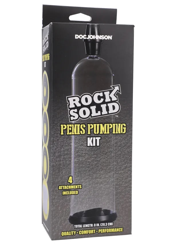 Prepare yourself for bigger, thicker erections with Rock Solid's Manual Penis Pump. This pump comes with three interchangeable round silicone and one vulva sleeve for whatever tightness and feel is desired. The clear tube allows you to see your growth with each pull of the lever.