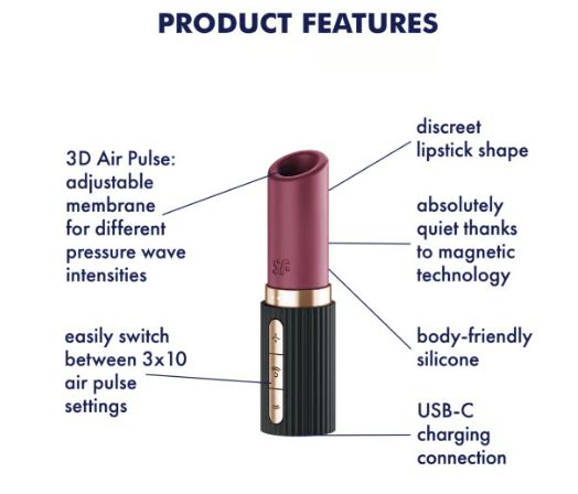Discover the ultimate kiss: The Pro 2 Kiss combines discreet design with non-contact pressure wave stimulation. Disguised as an elegant lipstick, this air pulse vibrator is the ideal addition to your handbag.