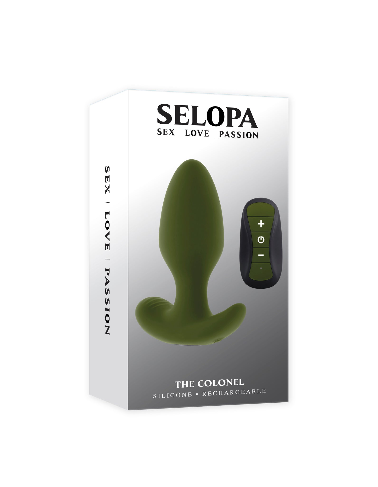 Selopa The Colonel Butt Plug from Evolved Novelties. This chunky Vibrating Butt Plug has a friendly bulbous shape and a tapered round tip for smooth entry. Its powerful motor operates by remote control or with one easy button on the wide safety base.