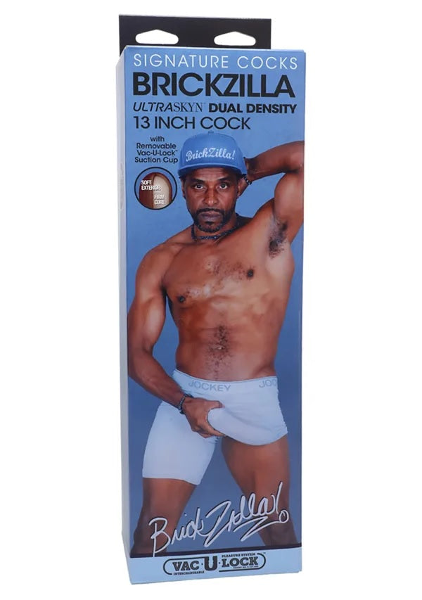 Features: Handcrafted from ULTRASKYN, for The Ultimate Feel Molded Directly from Brickzilla's Cock Dual Density Design Feels Real Soft Exterior and Firm Core Incredibly Lifelike Look and Feel Textured Veins for Added Stimulation Removable Vac-U-Lock Suction Cup for Hands-Free Play Vac-U-Lock and O-Ring Harness Compatible Includes Bag for Discreet Travel and Storage Phthalate-Free, Body-Safe
