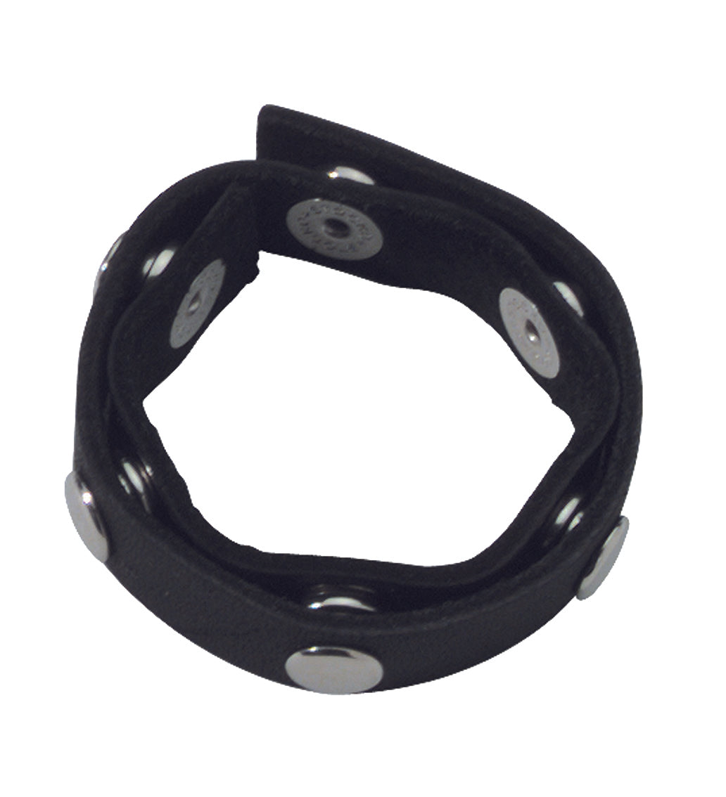 Spartacus Leathers Black Leather Six Speed Cock Ring. These multiple speed Black Leather Cock Rings have tons of snaps for total size adjustable 1 inch to 3.75 inches. Choose between six or ten levels adjustment. The Six Speed Cock Ring is also available with Nickel free hardware for sensitive skin. Leather Rings with extra snaps. These Cock Rings feature extra snaps for maximum adjust-ability and are made with soft but firm Oil Tan Leather. Please note these Rings do not vibrate. Spartacus A Passion For Quality Catalog page 29. Made in the USA. Categories: Love Rings, Cock Rings, Classic Cock Rings, Men's Cock and Ball Gear. 2023.