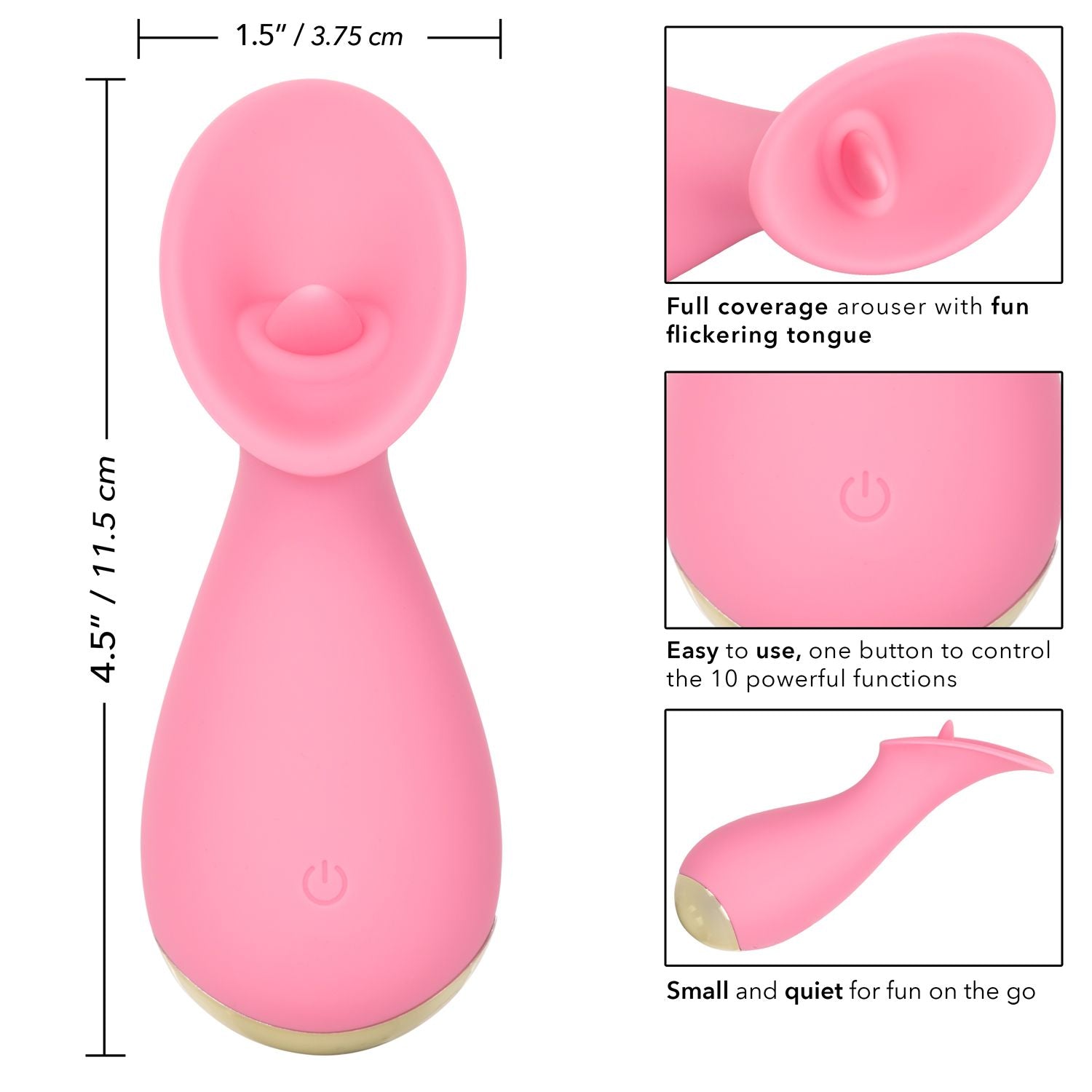 Features: Phthalate free, Waterproof vibrations, Rechargeable Arouser, Vibrates. Maximum run time 90 minutes. Maximum charging time 150 minutes. Measurements 3.75 inches by 1.5 inches massager. 4.5 inches by 1.5 inches overall. Bulk weight 1.8 ounces. Package 5.3 ounces. Package 2 inches by 4.75 inches by 8.5 inches. Categories: Eco-Friendly Sex Toys, Rechargeable Vibrators, Tongue Vibrators, Sex Toys for Women, Clit Cuddlers. 2023.