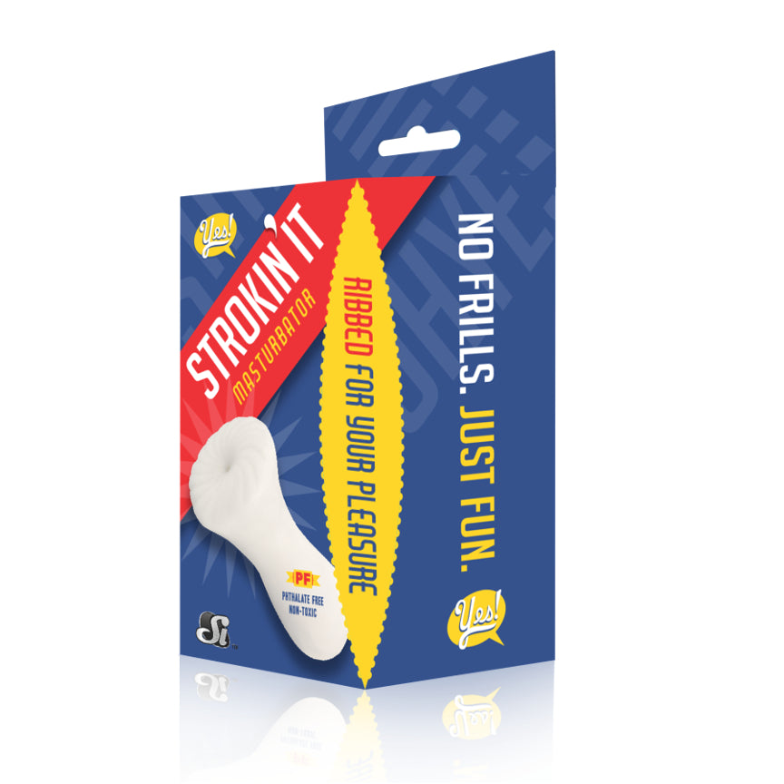 SI Novelties Strokin It Masturbator features a silky Thermoplastic Rubber TPR material. Ribbed tunnel for increased pleasure. Double holes for easy cleaning. Strokin It will lend a hand whenever you want! Ribbed for your pleasure on the inside, you can use Strokin It over and over again. 6 inches in length.