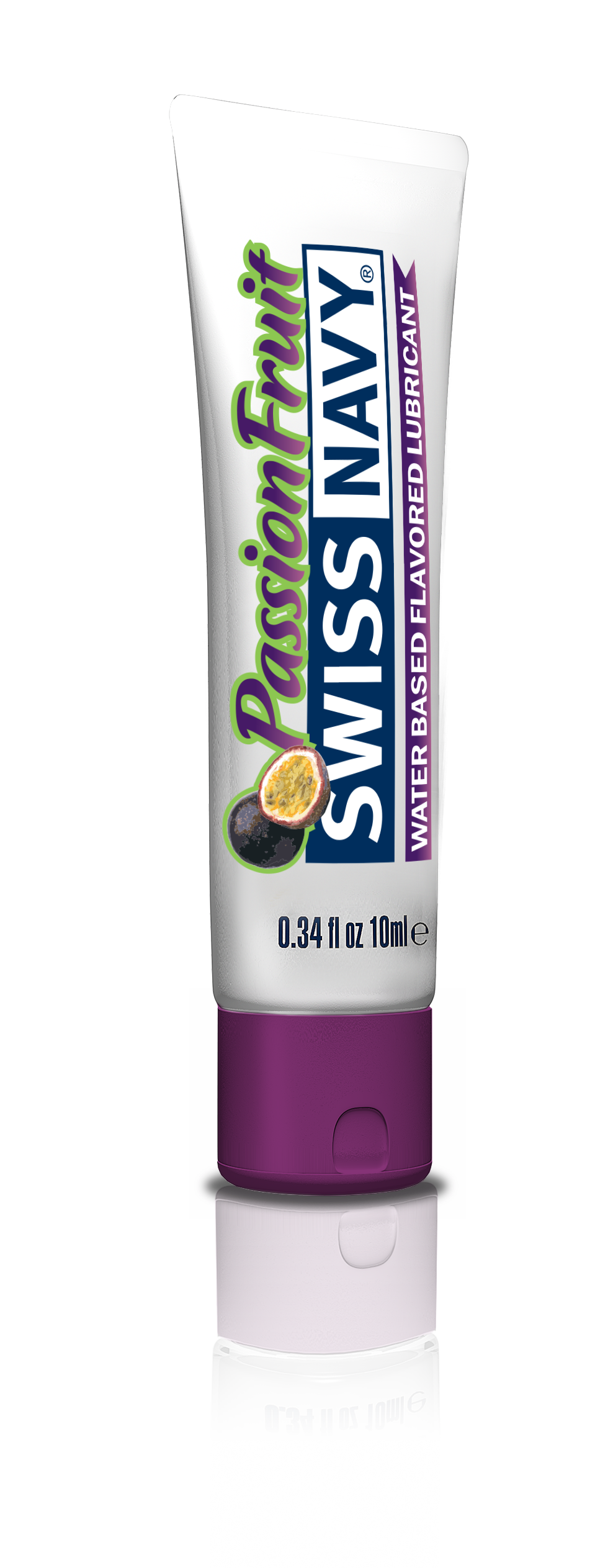 Swiss Navy Passion Fruit Flavored Lubricant 10ml from MD Science. Swiss Navy Flavors taste so real they seem too good to be lubes. We used a Fortune 500 food company to formulate our flavors to ensure Swiss Navy Flavors would taste genuinely like their name. All the flavors are paraben free, sugar free and are non-sticky. 6 fantastic fresh flavors: Strawberry Kiwi, Pina Colada, Passion Fruit, Very Wild Cherry, Cooling Peppermint and Chocolate Bliss.Additional information: Safe for latex condom use. Keep out of reach of children. Directions: apply as desired to area to be lubricated. Ingredients: Passion Fruit Water, Glycerin, Cellulose Gum, Propylene Glycol, Sodium Benzoate, Sodium Saccharin, Potassium Acesulfame, Diazolidinyl Urea, Flavor Aroma, Citric Acid, PEG-8, Disodium EDTA, Potassium Sorbate. Made in the USA. MD Science - Swiss Navy. 2022.