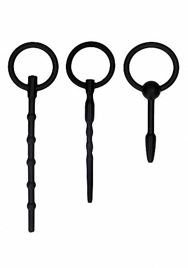 Ouch Urethral Sounding Plug Set Black from Shots Toys. The Ouch! Urethral sounding Plug Set is comprised of 3 phthalate free high grade smooth medical silicone dilators, which can be used incrementally for urethral play. They can be used to create immense stimulation and to gradually open up new realms of pleasure. These flexible, textured dilators can produce incredible sensations and help build up strong erections and powerful orgasms. They are ideal for BDSM play and especially for creating medical play experiences. Each of the dilators has a different size and texture for added sensation and a gentle transition from one size to the next. See specifications for exact sizes on the box. The ring pull design offers the security of easy removal. Warning: If not conducted carefully, sounding carries a risk of irritation, tearing of the urethra, or of urinary tract infection. Size dilators small 4.5 diameter, 3,5 inner diameter, 5,2 insertion length.