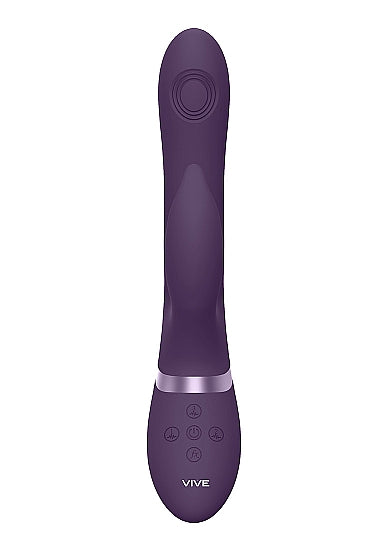 Vive Aimi Pulse Wave and G-Spot Rabbit Vibrator Purple from Shots Toys. Aimi is one of the most innovative and powerful vibrators on the market today. Thanks to its three innovative 10 function New Generation F1 motors and its advanced technologies. All three motors can be Independently controlled. It is truly top of the bill! The vibrating tip contains a 10 function New Generation F1 Pulse Wave Motor for G-Spot stimulation. Simultaneously contains a unique 10 function NG F1 vibrating motor for clitoral stimulation. It vibrates and moves side to side, so it will leave you breathless! In total, this toy offers 100 different combinations. Made from 100% silky smooth medical grade Silicone hypoallergenic. It is totally waterproof IPX7. Extremely quiet at under 60dB. This means you can use it wherever your heart desires. It contains a USB magnetic rechargeable Lithium ion battery, and fully charged will provide 40 minutes of passionate play time. Just plug, charge and play! When you are getting close to climax, just one touch on the special function climax button will immediately bring all the motors to full power. And more importantly, bring you to an earth shattering orgasm. All Vive Vibrators have a full 1 year warranty to protect your investment.