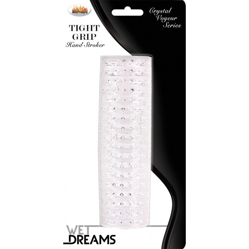 Wet Dreams Tight Grip Stroker Clear from Hott Products Unlimited. Crystal Voyeur series. Handy Man Stroker Sleeve really let's you see and feel your member in a very intimate sensuous way! The ultra thin super soft sleeve provides maximum comfort and ultra sensation to your man tool while the crystal clear see through material let's you both see and feel. Jack yourself off in an yourself as you even more exhilarating way!