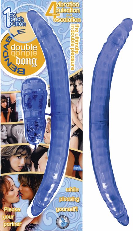 Bendable Double Dong . Flexible, clear jelly 14 inches slim vibrating double dong. Please your partner while pleasing yourself! Or, if you are flying solo, use one end for vaginal penetration and one end for anal penetration. Dong is flexible to satisfy your body's your needs. Your orgasm! One easy touch button remote controls 4 levels of vibration, pulsation and escalation! Vibrating double dong requires 2 AA batteries, not included. A water based lubricant is recommended. Vibrating sex toy requires 3 AAA batteries, not included. Do not leave batteries in the vibrator between uses. Always clean before and after use. Made using phthalate free, non-toxic materials Thermoplastic Rubber TPR dong, ABS plastic power supply. A water based lubricant is recommended. Double dong, vibrating double dildo, sex toys for women. Bendable Double Dong from Nasstoys of New York.