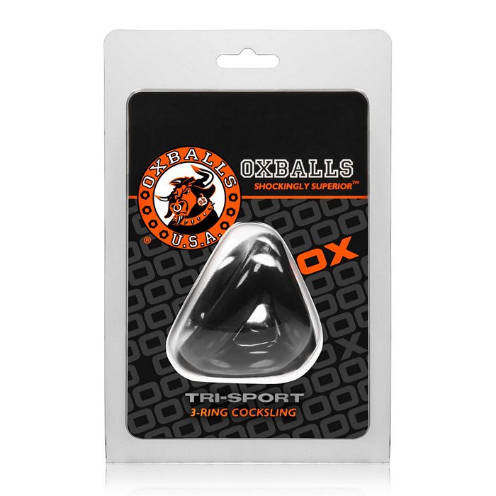 Tri Sport is the new futuristic sportsling from Atomic Jock. It is made up of 3 conjoined cock rings that grip your dick, balls, and the base of your shaft feels just like a dude’s hand wrapped snug around your swollen package. Tri Sport is modeled after traditional steel tri cock rings but without all the discomfort and rigid material no worrying about pinching metal or trying to wrestle your hard dick into a too tight steel contraption. It is made from blubbery Flex-TPR so it molds to your meat and stretches to fit your junk just right.Tri Sport’s unique versatile design lets you choose how you wear it, you can pull your nuts through the wider opening and have more grip on your dick or mix it up if you have got a huge hog and tight balls or anything in between. You can even pull your sack through the sides and use it as a ball separator. The dual sensation of squeeze around your sweaty ball bag and bloated dick will have you launching load after load of thick creamy cum. And for you go go boys and show offs out there, Tri Sport is perfect for beefing up your bulge in a skimpy jock strap or skin tight gear. Made using Flex-TPR safe, non-toxic and phthalate free. Recommended lube water based. Always wash any stretchy toy in warm soapy water after use and store all toys so they do not touch each other. Stats approximate height 1.75 inches, width 2.25inches. Cock ball opening circumferences stretch to fit your meat 3.5 inches to 4 inches. Weight 1.3 ounces. Color Police Blue.