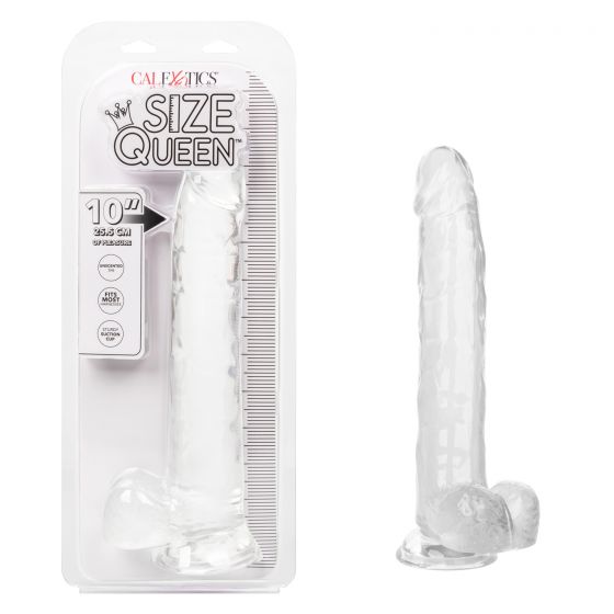 Size Queen 10 inches Purple Realistic Dildo from California Exotic Novelties. For the Size Queen inside all of us, we are pleased to introduce one of our most delectable products the 10 inches Size Queen. With a firm, life like feel, you will not be able to distinguish this from the real thing, and that is exactly what we are aiming for. With a realistic head and veins a 10 inches long shaft, and an overall length of 12 inches, our inches Size Queen delivers more than the name implies. Take it all in, from the flexible shaft to all of the life like features. The sturdy suction cup base will allow you endless hours of enjoyment while mounted to any non-porous surface. To make things even better? The 10 inches Size Queen is fits most harnesses. The flex and bends mimics that of its natural human counterpart. Exactly what your body was built for. Embrace the Size Queen in yourself and hop on board. It is going to be a fun ride. Total length 12 inches, insertable 10 inches by 2 inches wide.