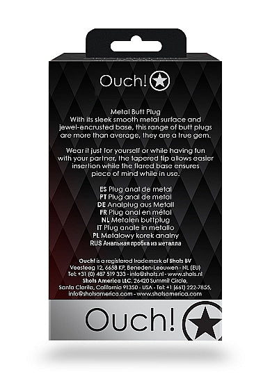 Ouch! Heart Gem Butt Plug Medium Silver *Rubellite Pink from Shots Toys. Fetish brand of the year. With its sleek smooth metal surface and jewel encrusted base, this range of butt plugs are more than average, they are a true gem. Wear it just for yourself or while having fun with your partner, the tapered tip allows easier insertion while the flared base ensures piece of mind while in use. Enter a whole new world of sensations and stimulation, the world of temperature play combined with the beauty and pleasure of our Ouch! Aluminum Butt Plugs with Jewels.