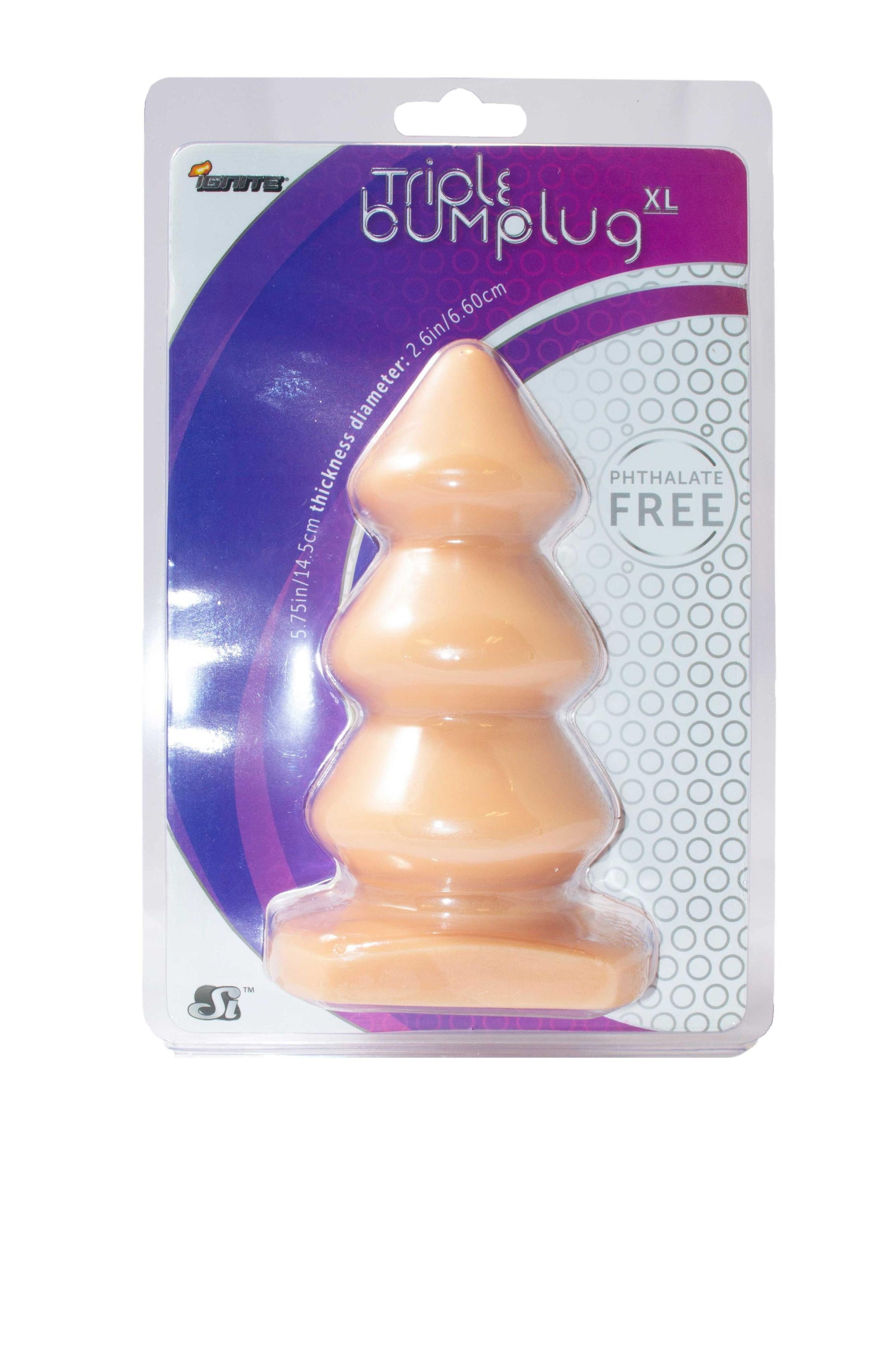 Bump Plug Extra Large is made using phthalate free materials PVC. Bump Plug features: a tapered end for easy insertion. Three graduated levels of pleasure plus a flat t-base for easy use. Plug measures 5.75 inches length by 2.6 inches wide at the thickest diameter. 19