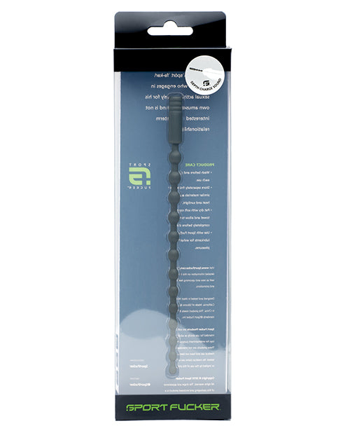 Depth Charge Sound Gray from Sport Fucker. Looking to try to bust your final sex cherry? Sounding is quickly becoming one of the fastest growing fetishes among men. You already spend half of your free time rubbing and tugging on your best appendage. Why not stimulate it from the inside? Not into traditional medical play? No problem. With our 100% medical grade premium Silicone sounds, your best man and its urethra will thank you! All the metal benefits of an ultra smooth surface and ability to sterilize without the cold, non-bending attributes of a traditional metal sound. All four styles of Sport Fucker’s Sounds come in blue, gray, black and red. Be sure to only use these great toys with our sterile lube. This solid sound is like a roller coaster for both of your heads at once! After you take your time and work it deep down into your shaft, you will need to brace yourself for the sensation overload your brain and dick are about to feel as you pull it out. Each of the 13 bumps - beads will send your pleasure sky high as your internal man nerves react to the ultra smooth ride. The ridges on the handle ensure a solid grip when they are all lubed up. Size length 7 inches. 13 bumps sizes .2 inch to .32 inch. Shaft .13 inch to .18 inch. Handle length 1.2 inches. Diameter .34 inch. Information on the back of the packages: Sport Fuck-er adjective: a person who engages in sexual activities purely for his own amusement and is not interested in a long term relationship. Product care: wash before and after use. Store separately from other similar materials. Store away from heat and sunlight. Pat dry with a soft cotton towel and allow to dry completely before storing. Use with Sport Fucker lubricants for a more enhanced pleasure session. Categories: Bondage, Fetish, Kink, Sex Toys for Men, Male Body Massagers, Health and Beauty Aids, Men's Cock, Ball Gear, Cock and Ball Gear. 2023.