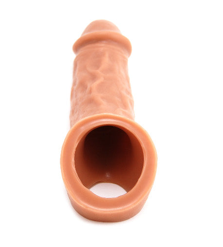 Vixen Creations Colossus is available in colors. Each sold separately. A massive up-sizing of Vixen's celebrated Ride On, Colossus is suitable for slipping on to a more generous sized penis. Outer: 6.75 inches long by 2.25 inches wide. Inner: 5.5 inches long by 1.375 inches wide. Made using Vixen's ultra supple platinum silicone with a duro meter a couple of notches softer than our regular formula. The hole for the testicles is comfortable, due to the material and ability to stretch. The strap around the testicles allows for strong stable stroking. Quick guide for putting the Colossus on: roll the sleeve one third of the way down. Apply lubricant to the inside of the Colossus and your penis. Squeeze out the air. Place your penis into the opening and gradually release the pressure. Unroll the Colossus to the base. Pull the scrotum through the hole. Pull to one side and push through one testicle. Repeat with the other. Have fun! Only use water-based lubricants with the Colossus. Category: PPA and Extenders. Colossus PPA is made by Vixen Creation San Francisco, CA.